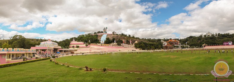 Located behind the Higher Secondary School, opposite the hill, towering with statues of Hanuman, Krishna, Shiva, Buddha, Zoroaster and Christ, it gives an imposing view. Bhagawan Baba addressed the mammoth gathering, from the Santhi Vedika (covered podium) on the Southern end of the stadium on His Birthday, 23 November, every year.