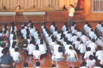 the prayers, which are multidenominational. This is followed by a short discourse by the Headmaster on the topic for the day.
