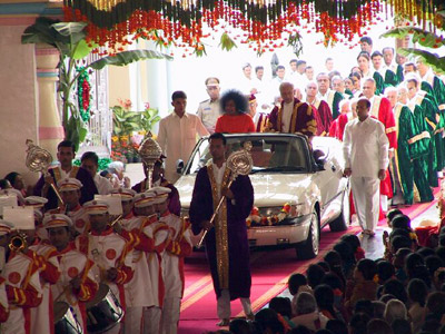 | The Avatar descends for the ascent of man. In a myriad ways, by His teachings, by His leelas (miraculous acts) and by His example, He gives man a taste of the bliss that is Divine Love, and a glimpse of his own glorious Reality. As Bhagawan says, the Avatar behaves in a human way so that mankind can feel kinship with Him, but rises to His superhuman heights so that mankind too can aspire to reach those heights. And Bhagawan Sri Sathya Sai Baba has been tirelessly engaged in this very task for the past eight decades, applying the soothing balm of His Love to alleviate human suffering and leading man on the royal path to the Kingdom Of God. November 23, when we celebrate the anniversary of the descent of our Lord Sai amongst us, is an opportunity for mankind to pay homage to this embodiment of selfless love. This year, the birthday celebrations at Prasanthi Nilayam were held 18--23 November. 18th November: Rathotsavam The Rathotsavam (Chariot Festival) at Prasanthi Nilayam is a tradition that goes back five decades to the early 1950’s. On this day, the students of Bhagawan, chanting Vedic incantations and singing bhajans, lead a procession with the idol of Lord Krishna on a rath (chariot) and the idols of Lord Rama, Lakshmana and Mother Sita on a palanquin, to the Old Mandir or what is now the Kalyana Mantapam, in the village of Puttaparthi. After worship is offered to the deities, the idols of Rama, Lakshmana, and Sita return to the Mandir. Later, in the evening, the idols are taken out in a procession in the village of Puttaparthi, amidst joyous celebration by the villagers. 19th November: Ladies Day The 10th Ladies Day celebration commenced on the morning of 19 November with Bhagawan lighting a lamp in front of the portrait of Mother Eswaramma. A plaque was then unveiled by Bhagawan, inaugurating the Eswaramma Women's Welfare Project. Dr. (Mrs.) Geeta Reddy, the Minister of Tourism & Sugar of the Government of Andhra Pradesh, was then invited to speak to the gathering. She began by expressing her gratitude on behalf of the State Government, for the Chennai Water Supply Project undertaken by Bhagawan, which has benefited the farmers of Nellore and Chittoor districts of Andhra Pradesh, and hailed Bhagawan as the champion of the poor. She also paid tribute to Bhagawan for championing the cause of women and recalled that it was Bhagawan who had first started a college for women in the economically backward district of Anantapur way back in 1972. She exhorted everyone to follow Bhagawan’s teachings so that we can make His Life, our message.