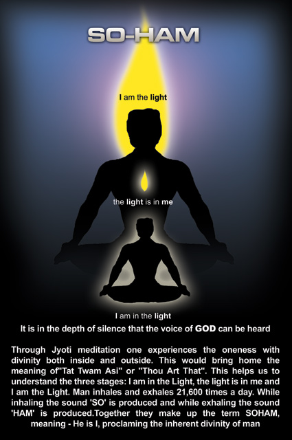 Educare also reveals to us the tools essential for achieving self-transformation. It stresses the importance of service before spirituality and practice by oneself before preaching to others. Three among the tools for self-transformation are an understanding of Soham Mantra, which proclaims the inherent divinity of man, silent sitting, and Jyothi Meditation.