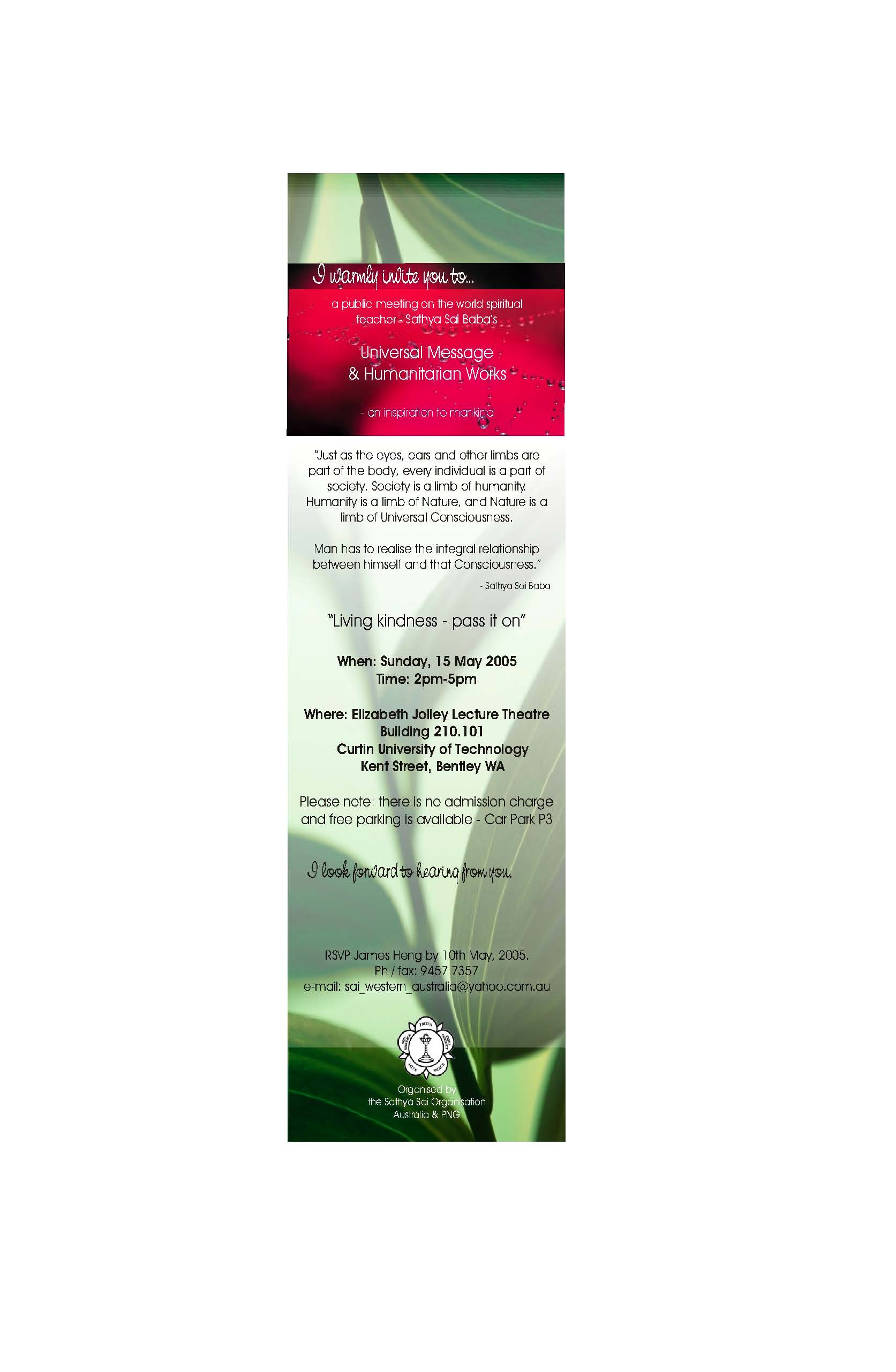 the Sai Organization.Program: