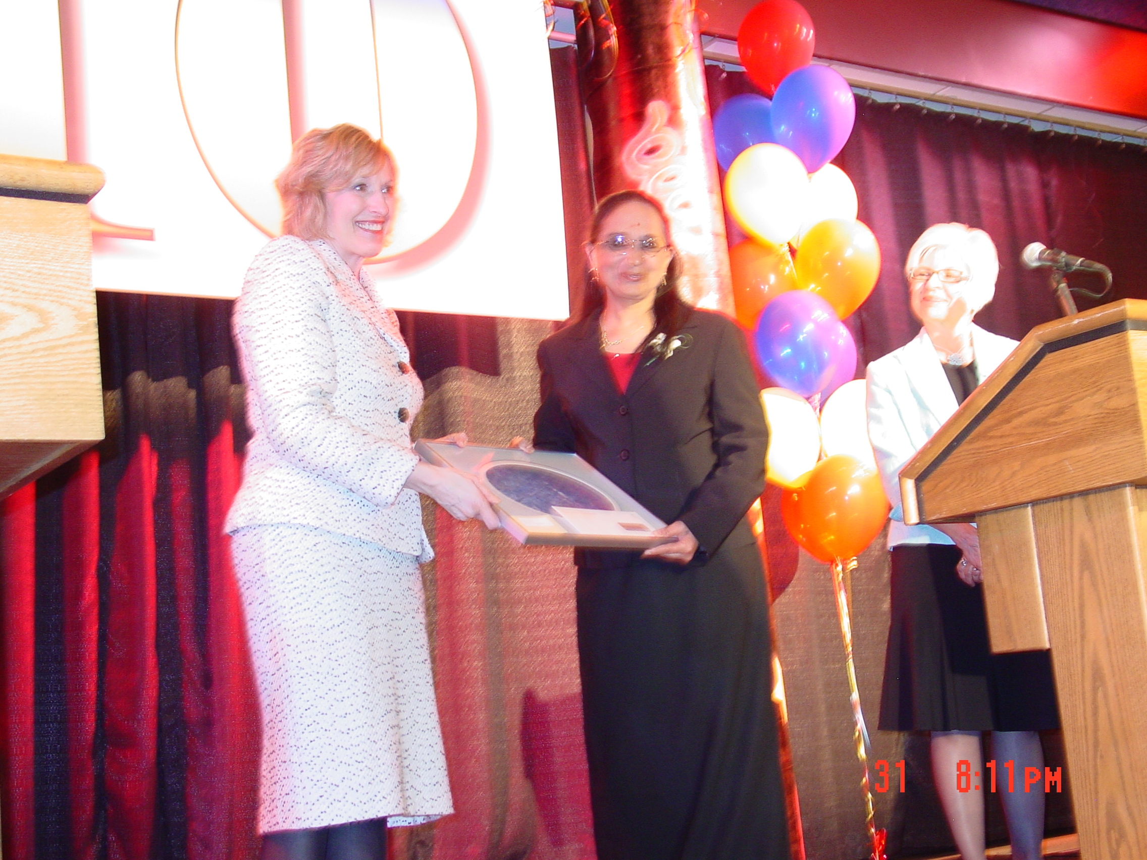 The first picture shows Kumudini receiving her Diploma from Swami on November 20, 2001; the second one shows Kumudini receiving her Educator of Distinction award from Bev Hanson, Superintendent of Schools in St.Paul Roman Catholic School Division in Saskatoon, on March 31, 2006. CLick on a picture to see an enlarged version. Click here for a message from the Sathya Sai Organization of Canada.