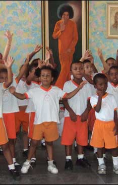 They decided to create a library with Baba´s books and to meet in groups to study bhajans, in essence, to establish a Sai Center. It was an auspicious time, a turning point, and they knew in that moment it was the beginning of a great effort, one which that carries on to this day. The women hugged each other, their hearts full of joy and peace, chanting Om Sai Ram. All were happy and feeling confident of their future. The generous and loving support and guidance of Sai brothers and sisters from Argentina, who enchanted them with their miraculous tales, cannot go unmentioned. Over the following years, Sai devotees from both the countries met each other several times in Latin America Congresses and soon the guidelines for the Sai Organization in Brazil were formed. The Leelas of the Lord Of the numerous Sai leelas (plays, sports) occurring in Brazil over the last twenty years, there are three described here. As mentioned previously, Sai Baba materialized a lingam for a Brazilian lady in 1987 and instructed her to bath her eyes with lingam water every day. By that time she had lost more than 80% of her vision. Not only was she completely healed, dozens of others have been cured of glaucoma by using the lingam water as well. In 1985, a Brazilian couple went to see Sai Baba. The wife had been diagnosed as infertile. In an interview, Swami materialized vibhuti for her but did not allow her husband to ingest it. Today, they have a family of three healthy children. The oldest is named Ananda and was born one year after the interview. Another young woman was yearning to see Sai Baba but was anxious about spending all of her financial resources that she had at the time. While preparing for an examination in Spanish the following day, something extraordinary occurred. While studying, she saw the sentence: Next year I will go to India. She was taken aback by this astonishing coincidence. Consulting with her teacher, they checked the text and confirmed that the sentence in question was not to be found anywhere. The Brazilian Sai Organization Currently, the Brazil Sai Organization has a Central Council overseeing 9 Regions. There are also 7 Coordinating Committees, 2 Regional Coordinators, 32 Sai Centers and 38 Sai Groups. The Sai Foundation established in 1992 is the management agent of the property of the Sai Organization in Brazil. Besides other functions, it publishes Sai Baba books in Portuguese and produces CDs, DVDs and VCDs. The Brazil Organization maintains a website – www.sathyasai.org.br – with information about Sri Sathya Sai Baba, a calendar of events, available books, Swami’s discourses, and seva projects in progress.