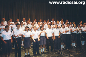 Voice of the Avatar on Radio Currently, there are two regular radio programs on the airwaves. One, called the Voice of the Avatar, has been running twice a week for twenty years, broadcasting Spanish translations of Swami's discourses. The other, radio station for children, focuses on Human Values. The announcers are Bal Vikas and former Bal Vikas students. Moving Transformation in Children… Speaking of Bal Vikas, one family had their three children of 8, 10, and 12 years in the classes. When the father lost his job, they had to sell their TV set to put food on the table. A few months after finding work, he had saved enough for a down payment for a new television. However, when he told his children, they said, “Father we don't want another TV because it will interfere with our studies.” Now these three children are all professionals: a doctor, an engineer, and an architect.