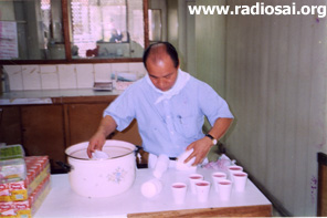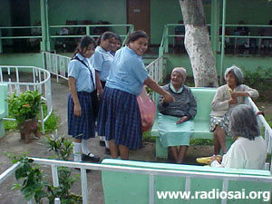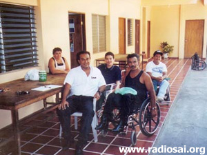 There is no requirement that the residents attend the Sai Center on the top floor, but some of them have started participating in bhajans and reading books about Swami. Miracles Began Happening … One patient, paralyzed from the waist down for nine years after falling out of a tree, had two long pins inserted on either side of his spinal column. The Sai doctors studied his X-rays and felt that the pins could be removed. One performed the necessary operation, and the patient then became completely paralyzed. Two weeks later he was awakened by Swami, who asked him how he was. When he said, "Swami, I am completely paralyzed," Baba said, “Now you are well, get up and walk.” It was 2:00 a.m., but he did as he was told and was amazed to discover he could now walk! He went to the phone and called a devotee to share the good news, even though it was the middle of the night. Thereafter, he got a job selling newspapers and was reunited with his wife and daughters who had separated from him because of his physical problems. Serving the Homeless and the Sick Devotees also prepare food for the homeless, who out of gratitude bring flowers for the lady sevaks on Mother's Day.