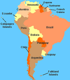 Colombia, Ecuador, Peru, Bolivia, Argentina, Uruguay, Paraguay,
