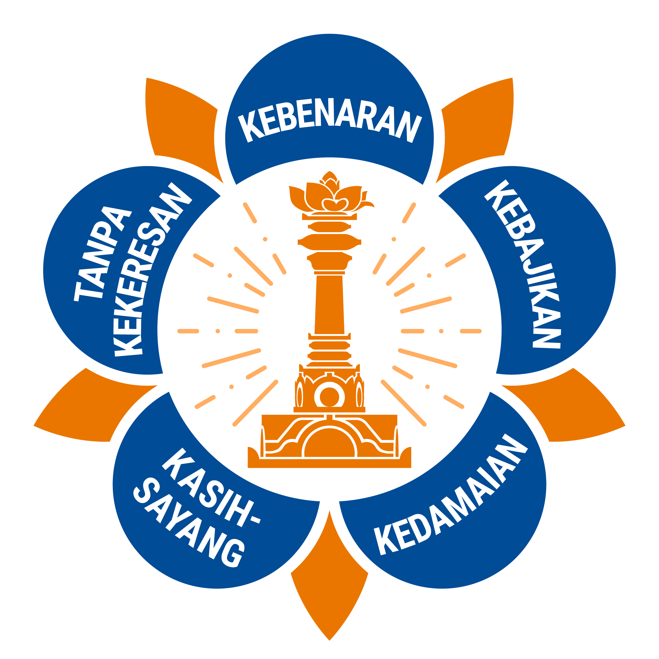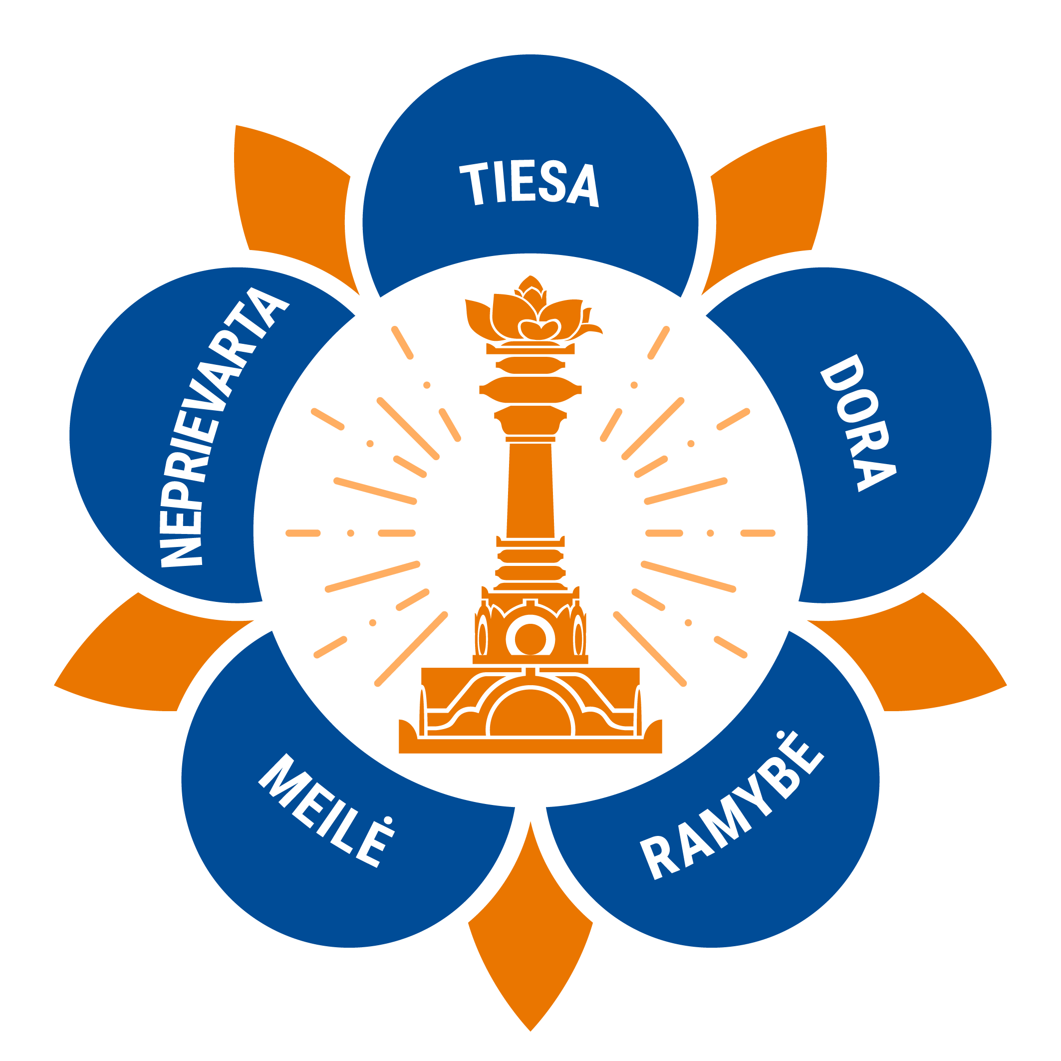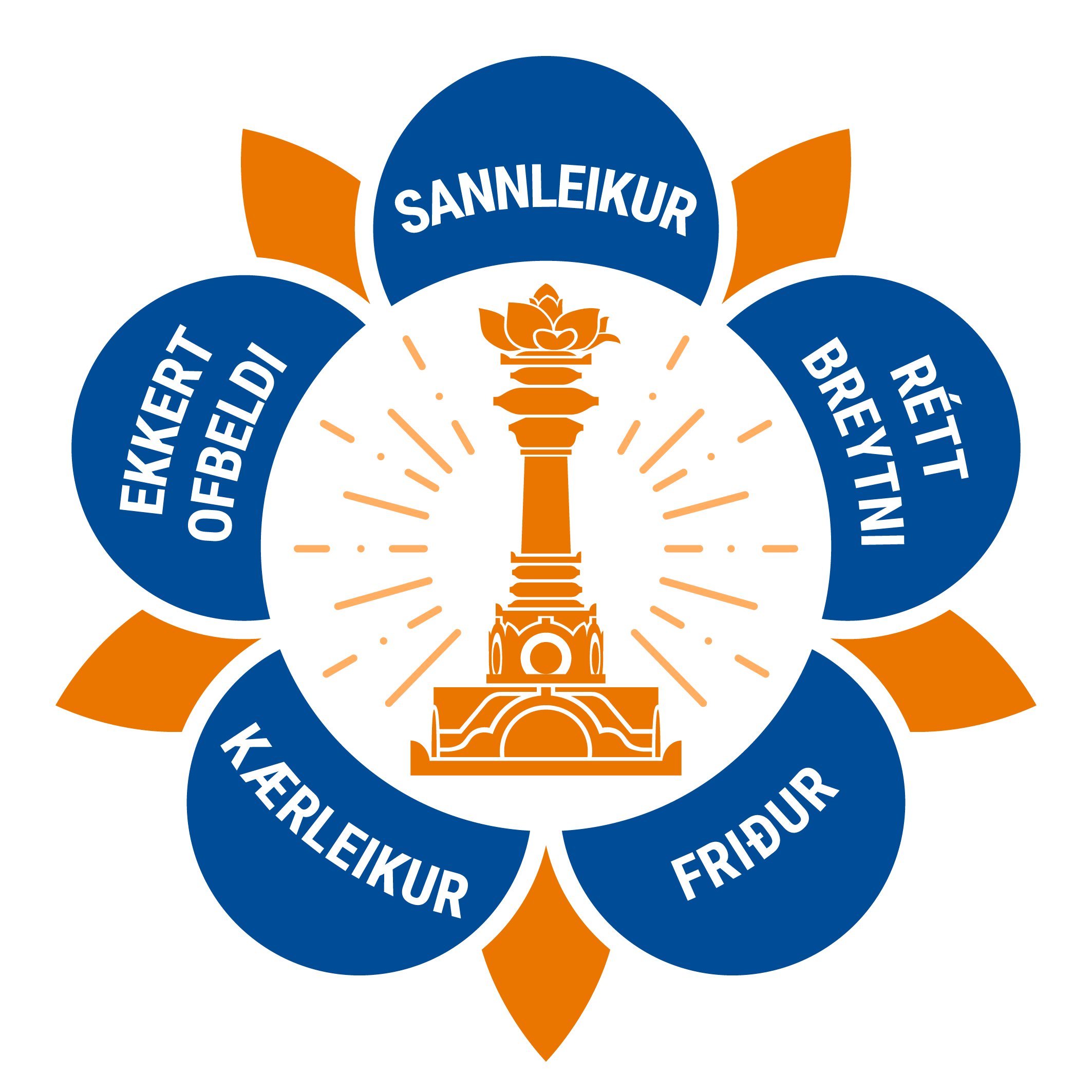 The logo of the SSSIO contains the five human values that form the foundation of Sri Sathya Sai Baba's teachings: truth (sathya), righteousness (dharma),peace (santhi), divine love (prema), and non-violence (ahimsa).