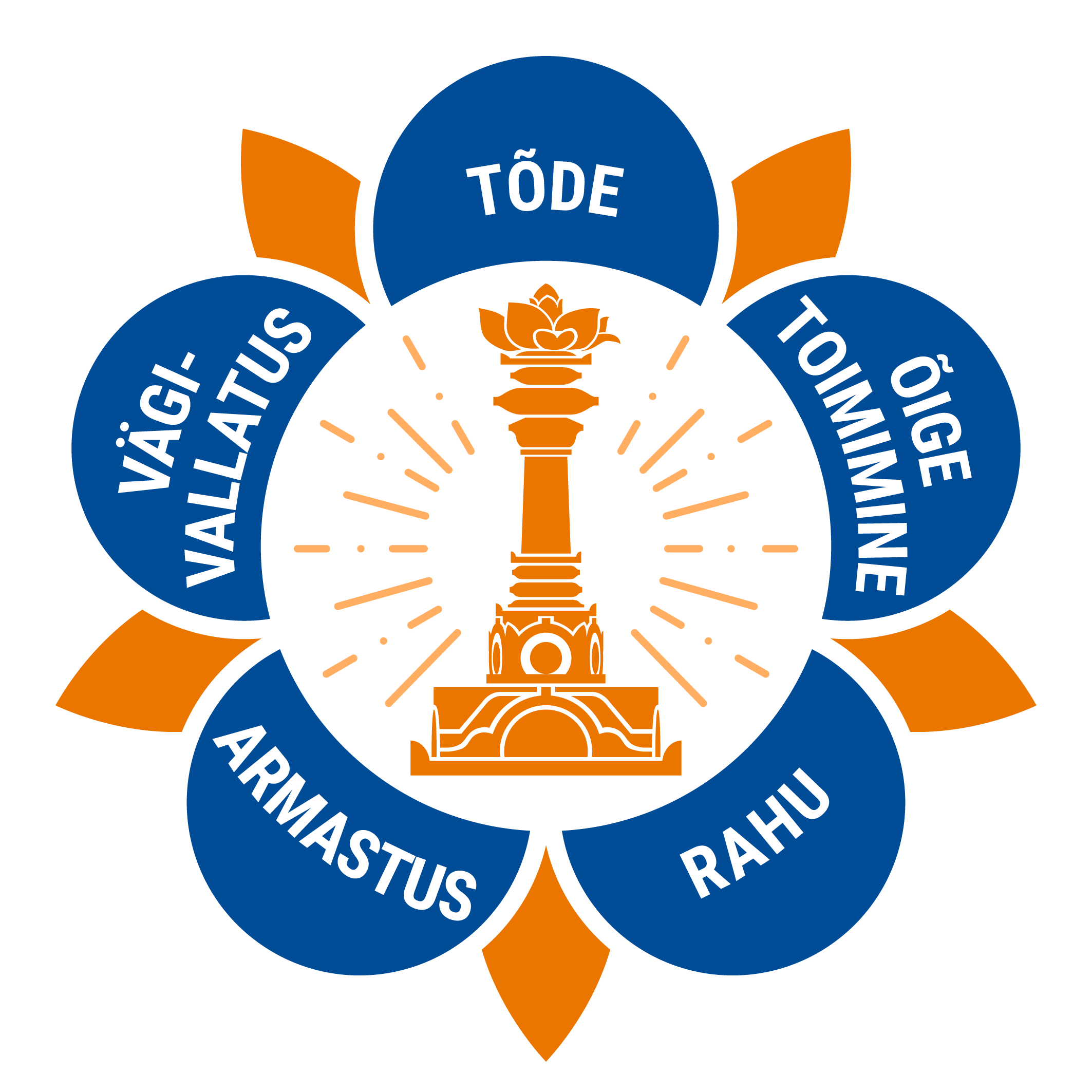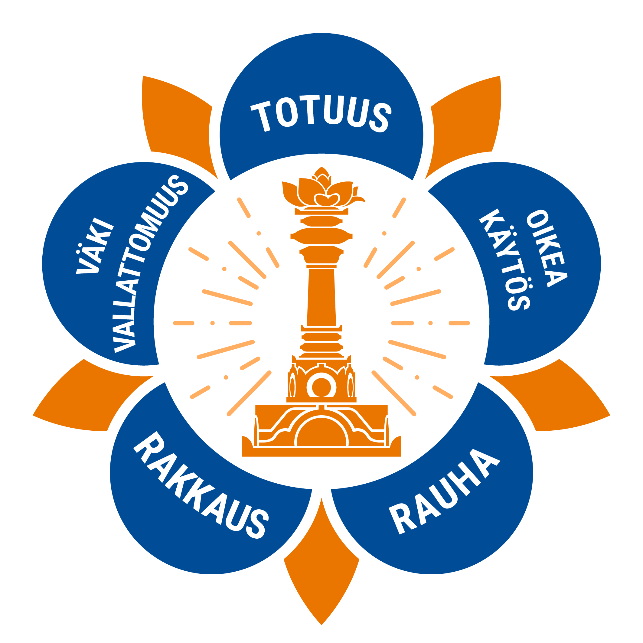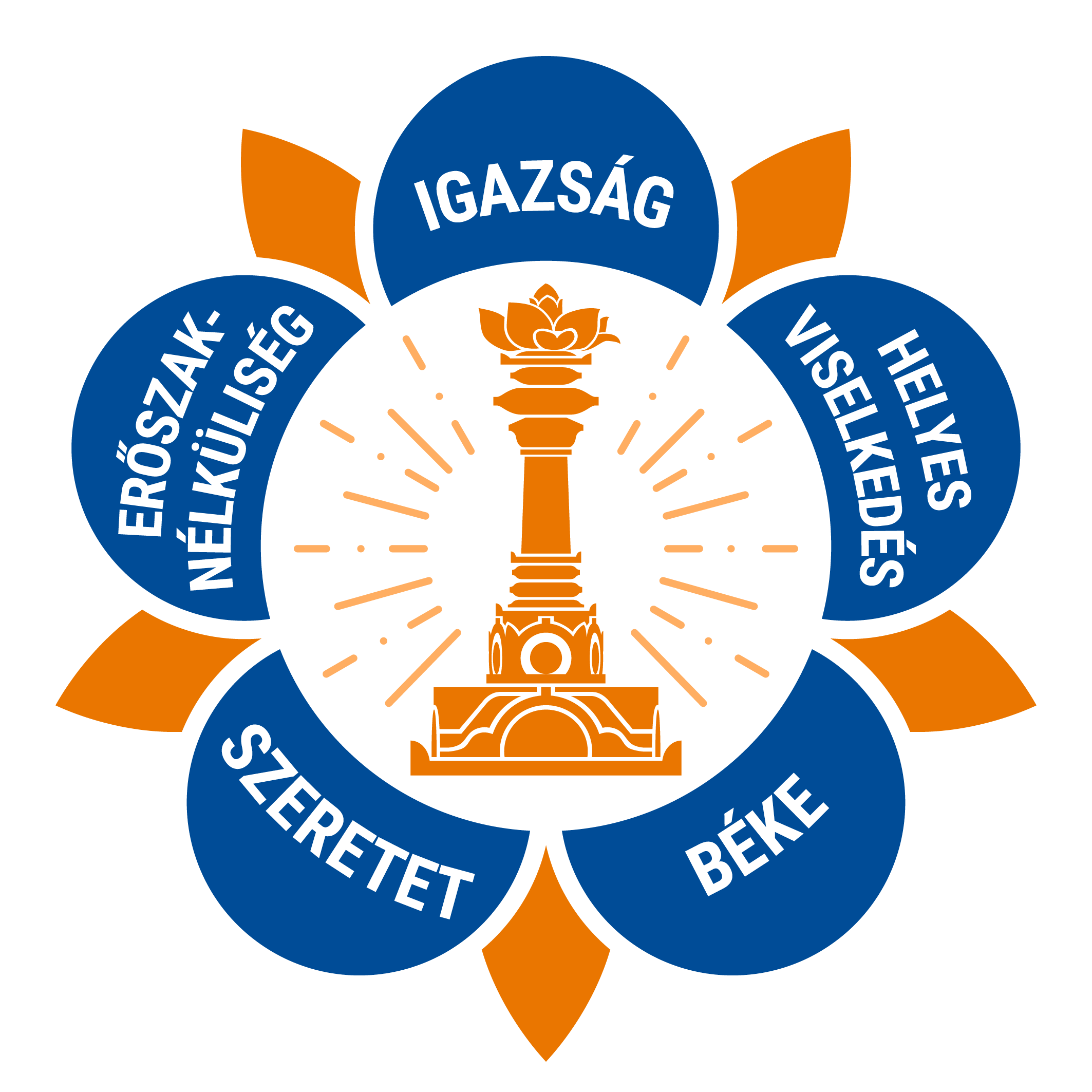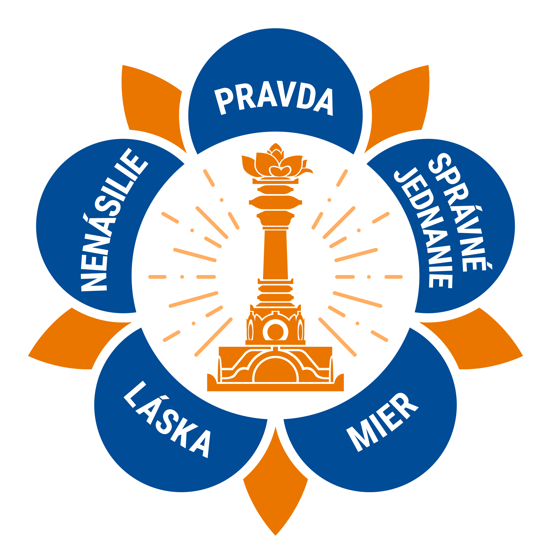 The logo of the SSSIO contains the five human values that form the foundation of Sri Sathya Sai Baba's teachings: truth (sathya), righteousness (dharma),peace (santhi), divine love (prema), and non-violence (ahimsa).