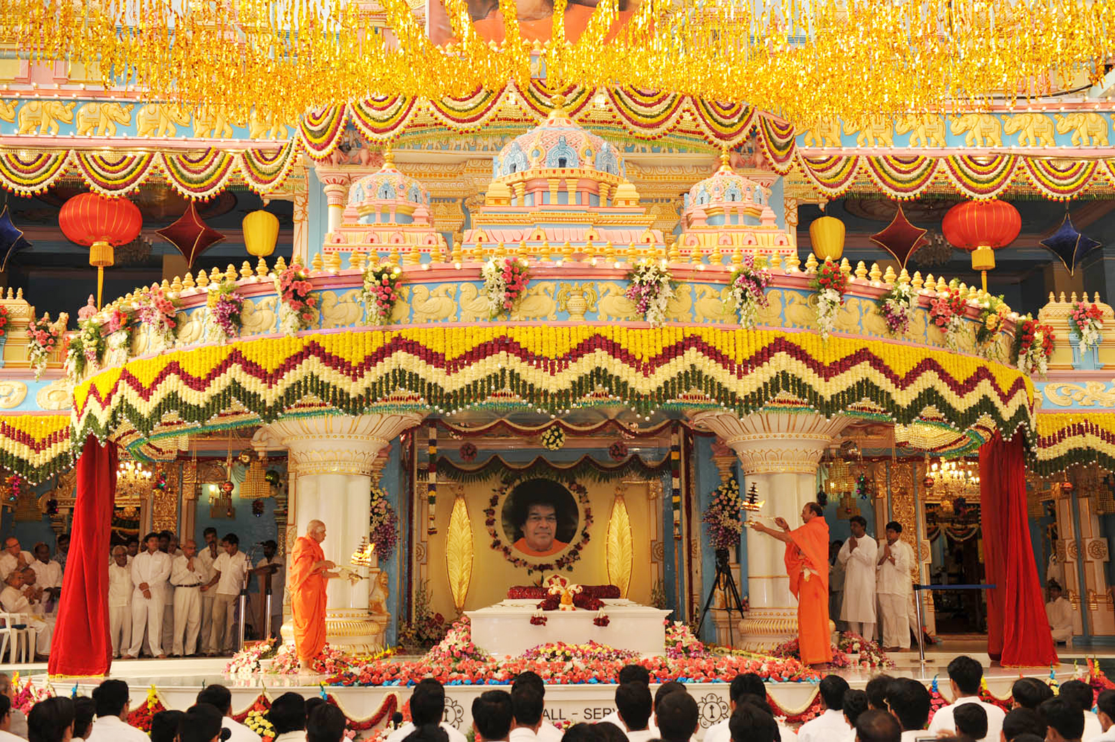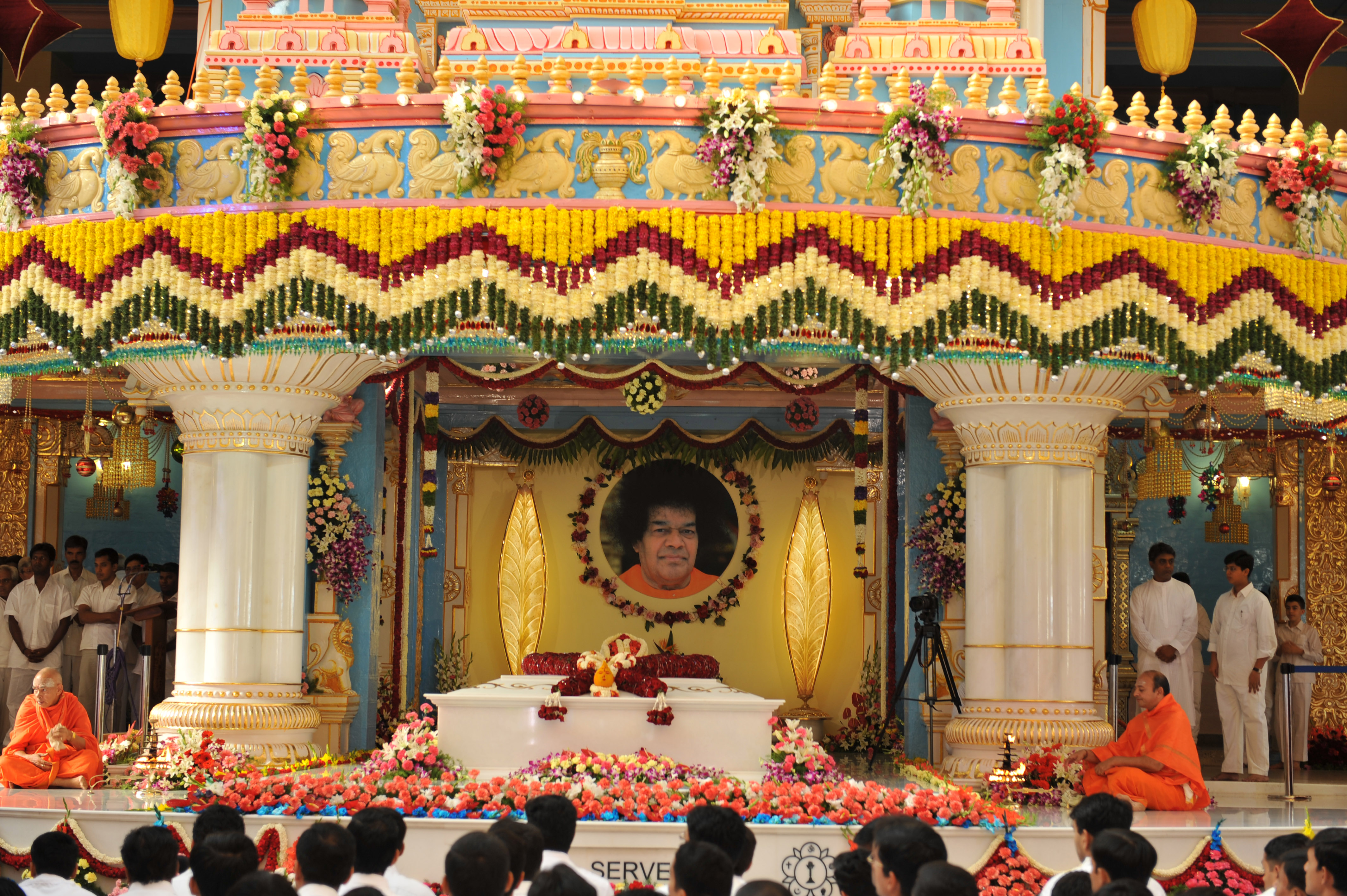 The images below show the permanent Mahasamadhi of Bhagawan Sri Sathya Sai Baba, which was unveiled on Guru Purnima, 15 July 2011. Click on one of the images to obtain a high-resolution version of it (1 to 4 MB) in a new window.