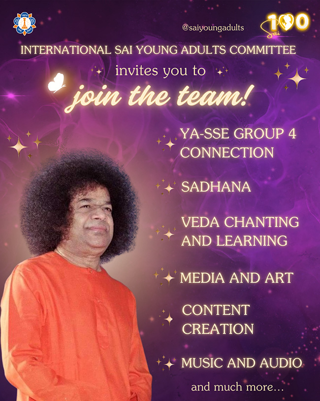 Each of the subcommittees is comprised of Sai Young Adults from around the world who are talented and motivated, with the yearning and skills to serve. Their efforts build a firm foundation by which these subcommittees can become long-term initiatives serving all members of the SSSIO, and beyond.